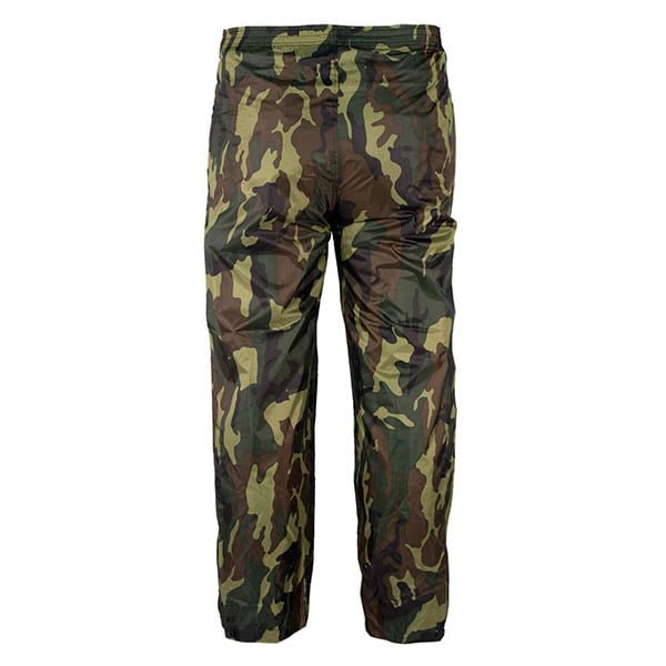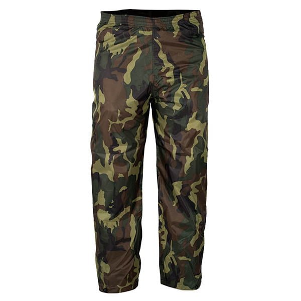 Vodootporan. Elastične manžete i podešavanje struka. Hlače imaju remen i patentni zatvarač u struku, s patentnim zatvaračem na gležnjevima i naramenicama. Vanjski džepovi za dokumente.