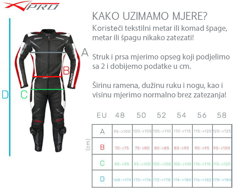 VELIČINA: 48 do 58 (EU).