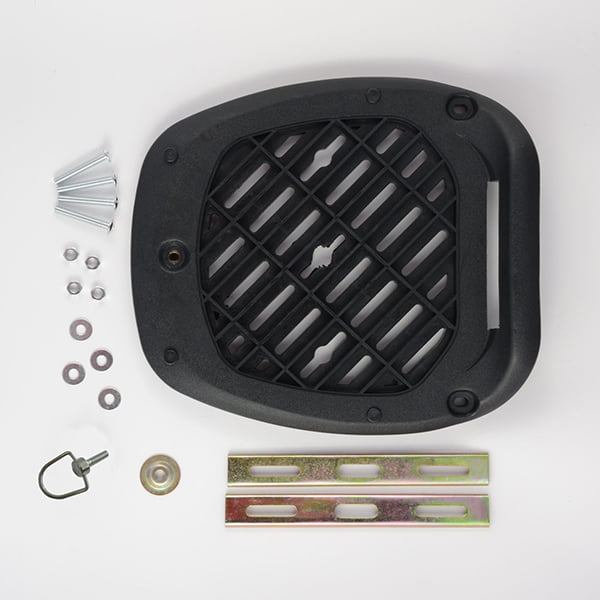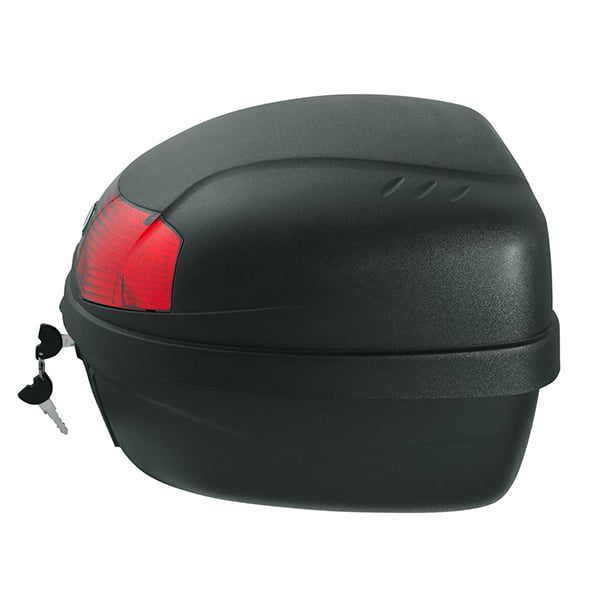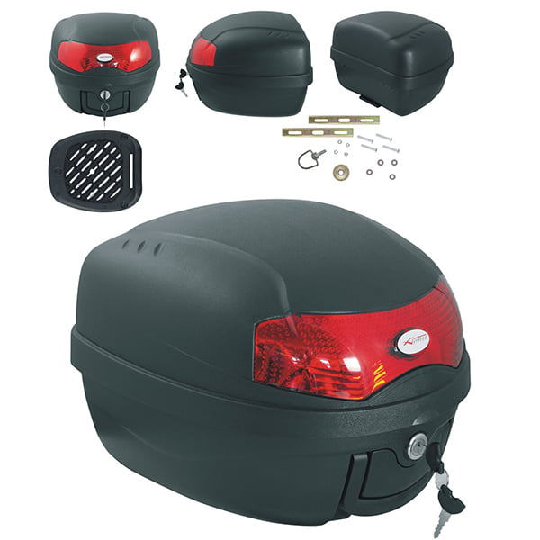 Top case Veličina: 39 X 29 X 38 cm – 28 LITARA. Gornji dio kućišta izrađen je od polipropilena, otporan je i krut. Sastoji se od montažne ploče koja je podesiva za motocikle i skutere. Ploča ima brzo otpuštanje za veću praktičnost. Opremljen s dva ključa za ručno zatvaranje. Može stati 1 kaciga, a maksimalna transportna težina je 3,5 kg. Pravi kompromis između cijene i količine za vaše potrebe.