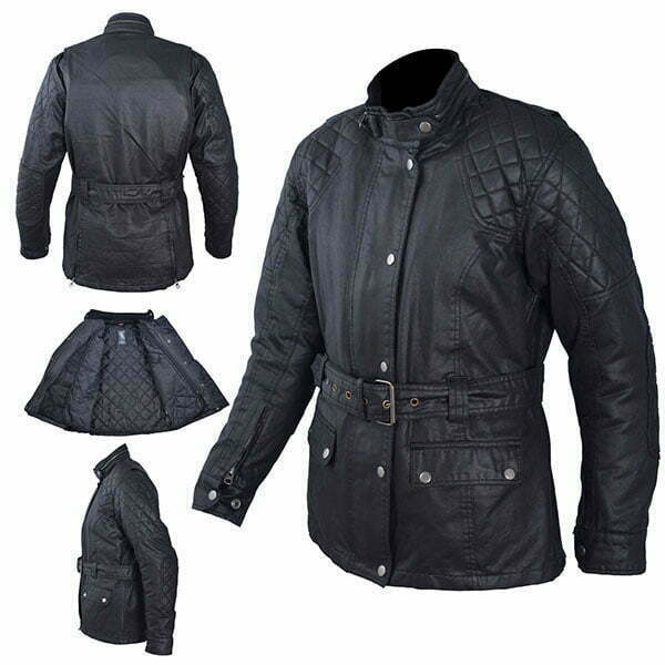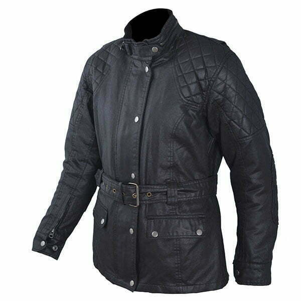 Ženska jakna od voštanog pamuka, vodootporna, Sharon. Udobna Hotlife unutrašnjost se može ukloniti radi lakšeg čišćenja i veće mogućnosti korištenja jakne. Dvostruki unutarnji džepovi za dokumente prate dva prednja džepa s gumbima. Sigurnost za ramena i laktove osiguravaju odobreni i skidivi štitnici, a tu su i pojačanja za leđa. Manšete s gumbima i patentnim zatvaračima te remen za podešavanje struka omogućuju prilagođavanje kroja Sharon. Prekrasan ukrasni patentni zatvarač na vratu daje dašak profinjenosti.
